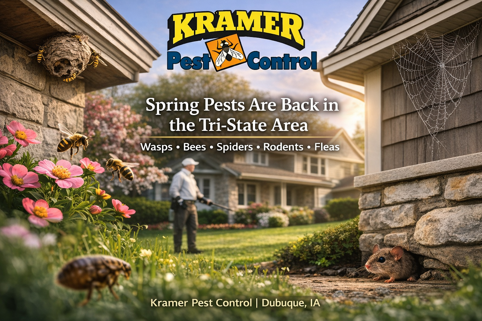At Kramer Pest Control, our local technicians understand exactly how wasps, bees, spiders, rodents, fleas—and the major players like ants, termites, ticks, and mosquitoes—behave in Dubuque and the tri-state area. We provide targeted, family- and pet-safe treatments along with preventative programs designed for Midwestern spring conditions.